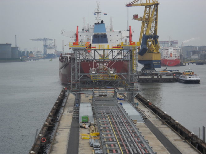 Delmeco has designed, delivered and installed three hose towers for Naftobudowa, which are part of the first phase of the new BTT terminal. The hose towers serve to manoeuvre six (8”) hoses (three times) to and from a ship for loading and unloading cargo. This cargo may consist of various types of oils.